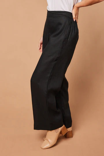 Camille Linen Wide Leg Pant in Black