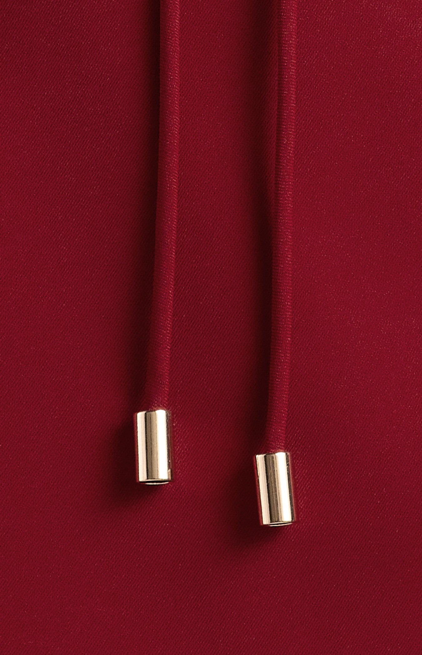 • String belt loops with a thin tie belt featuring gold metal toggles
