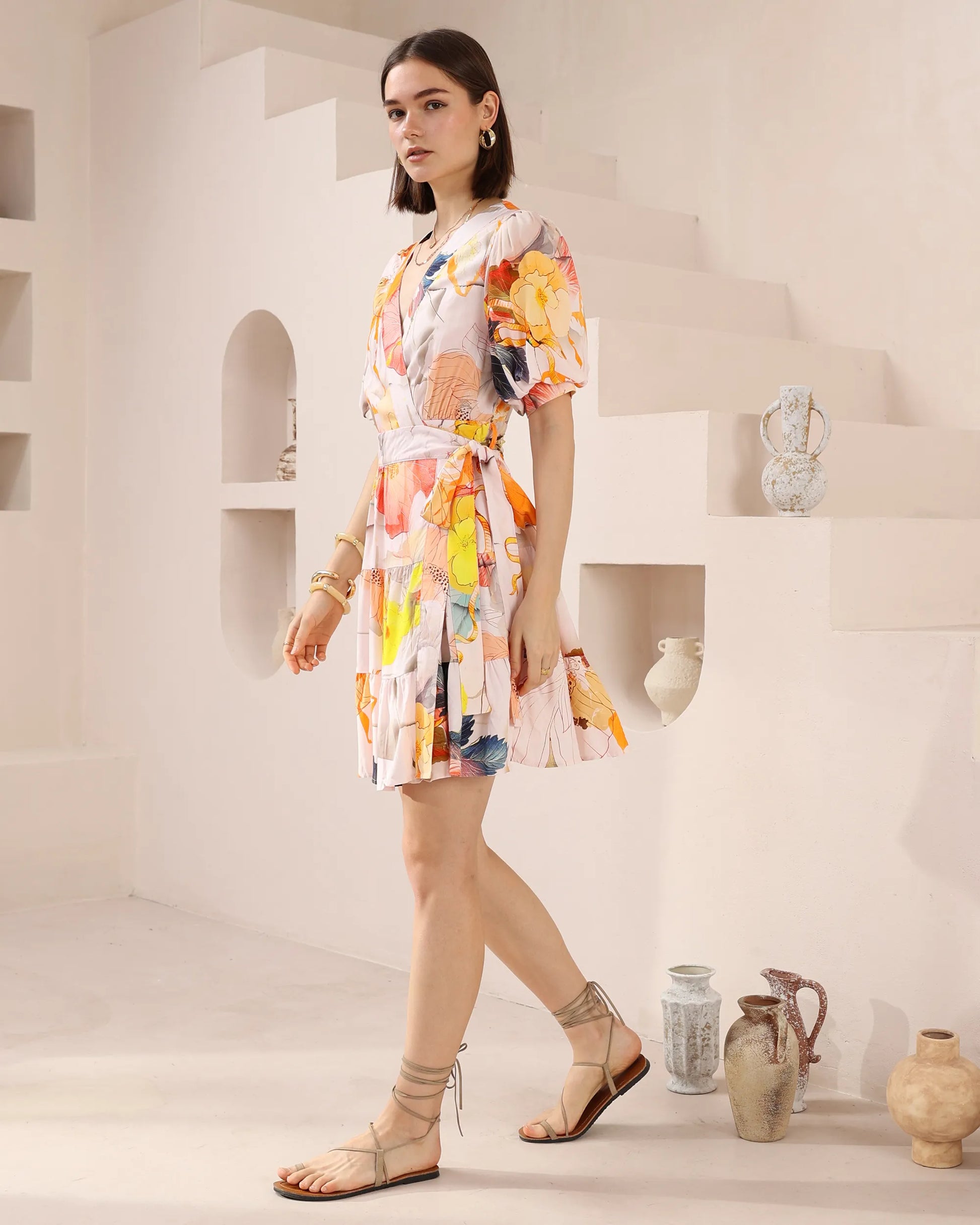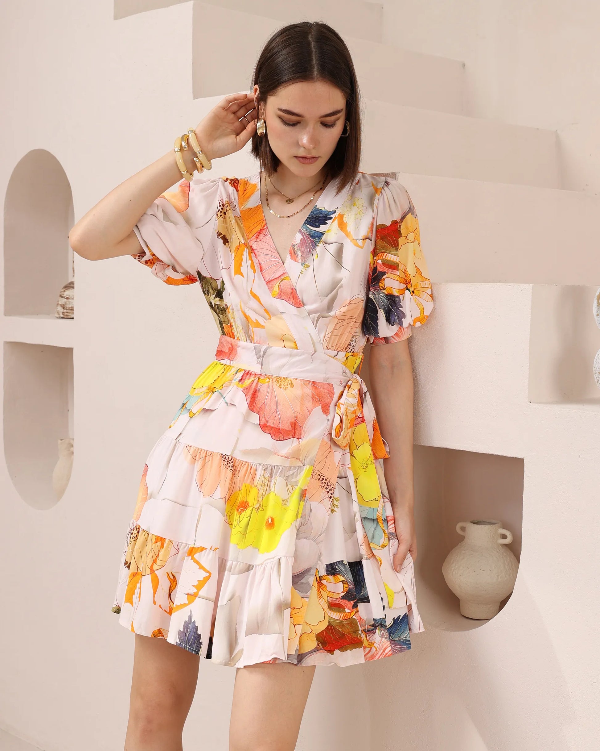 Layered Floral Wrap Dress