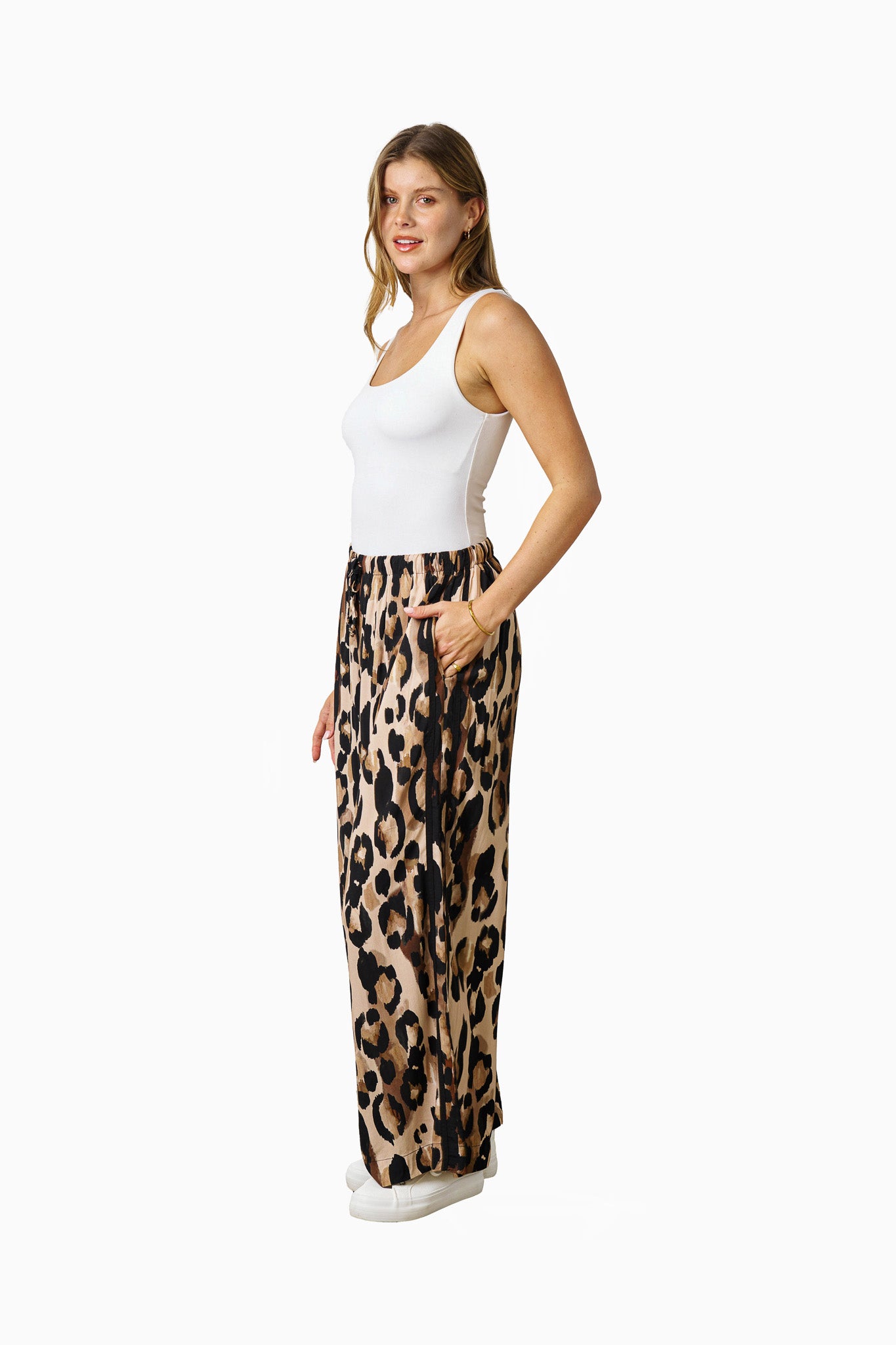• Style the pants with a simple cami and slides for laid-back weekends