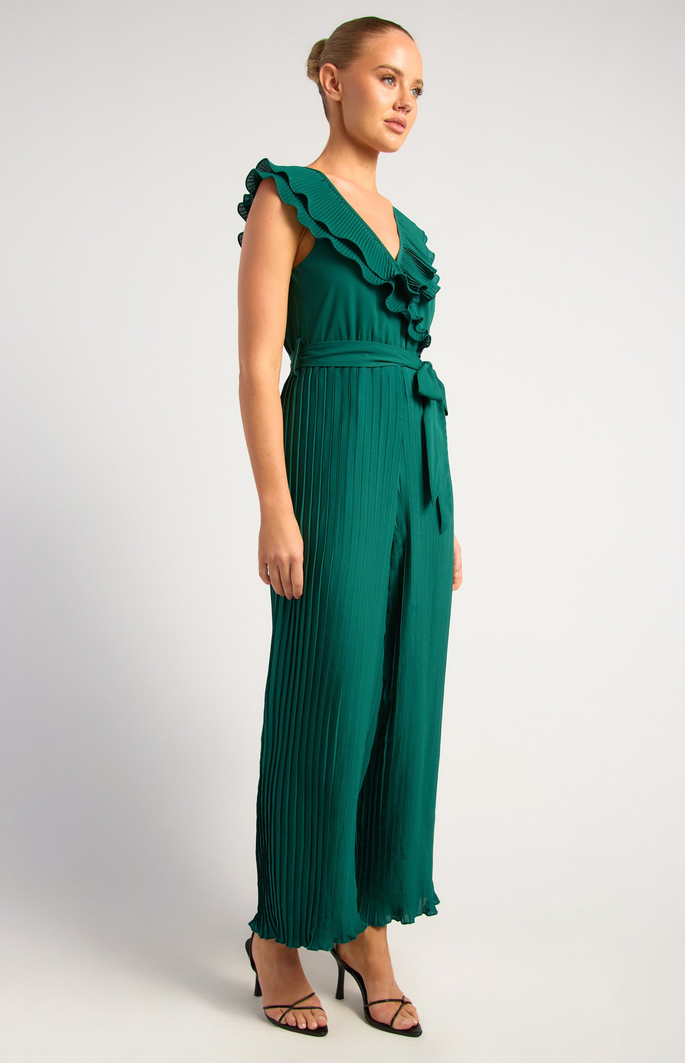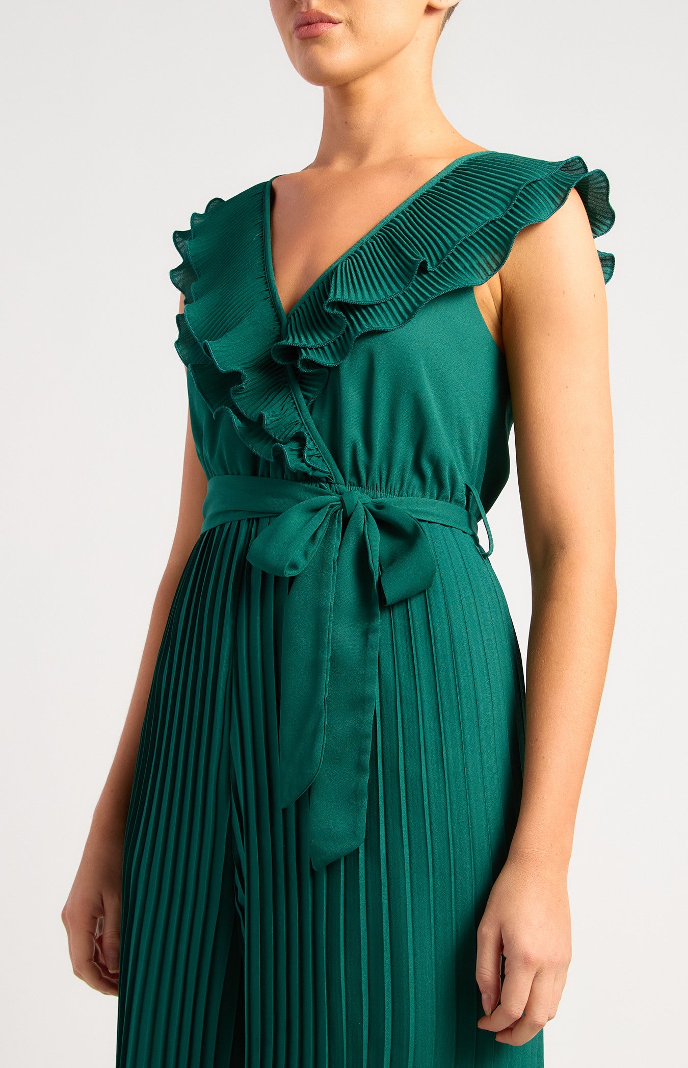Pleated Jumpsuit with Double Frill Neckline Feature