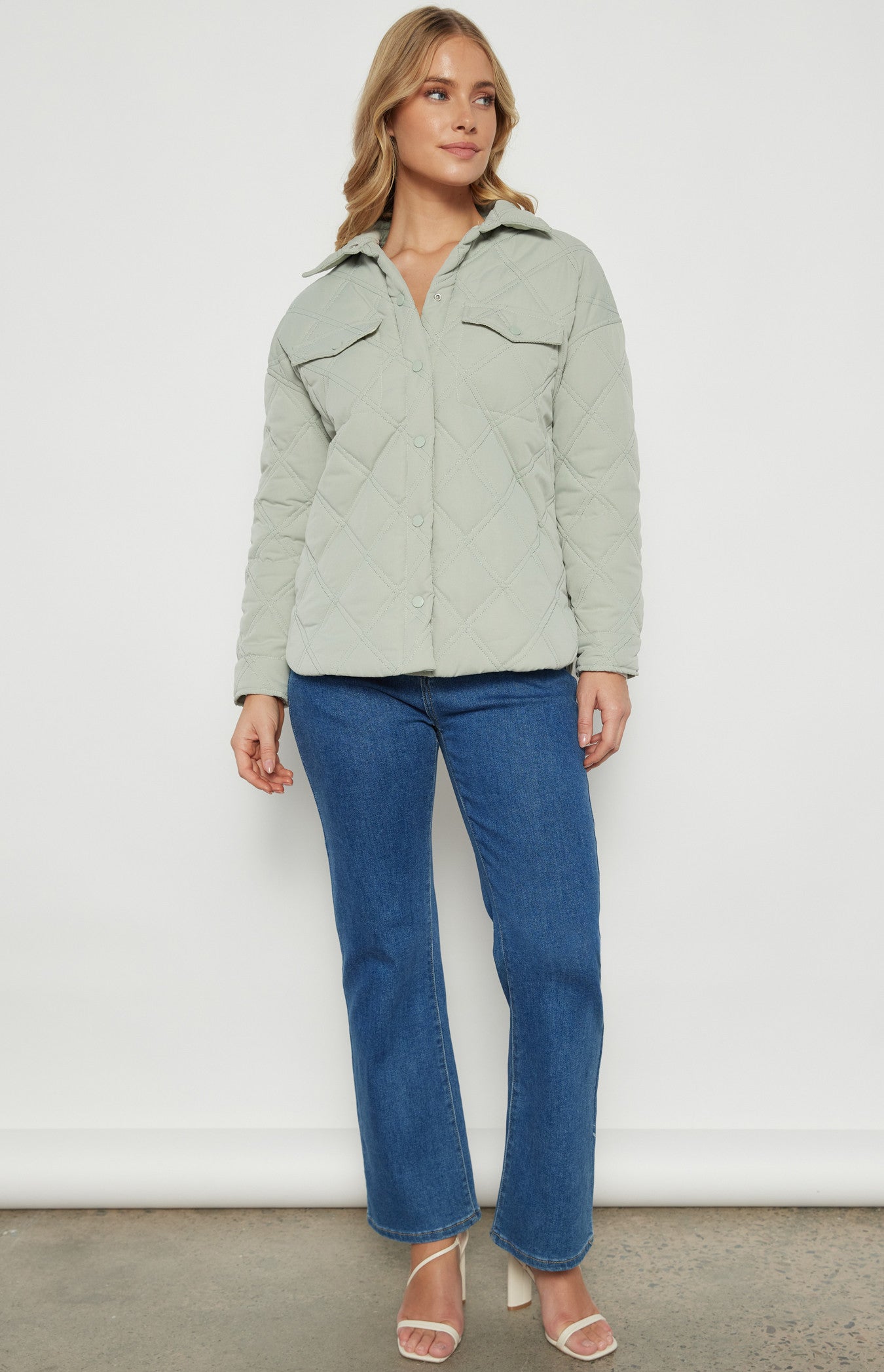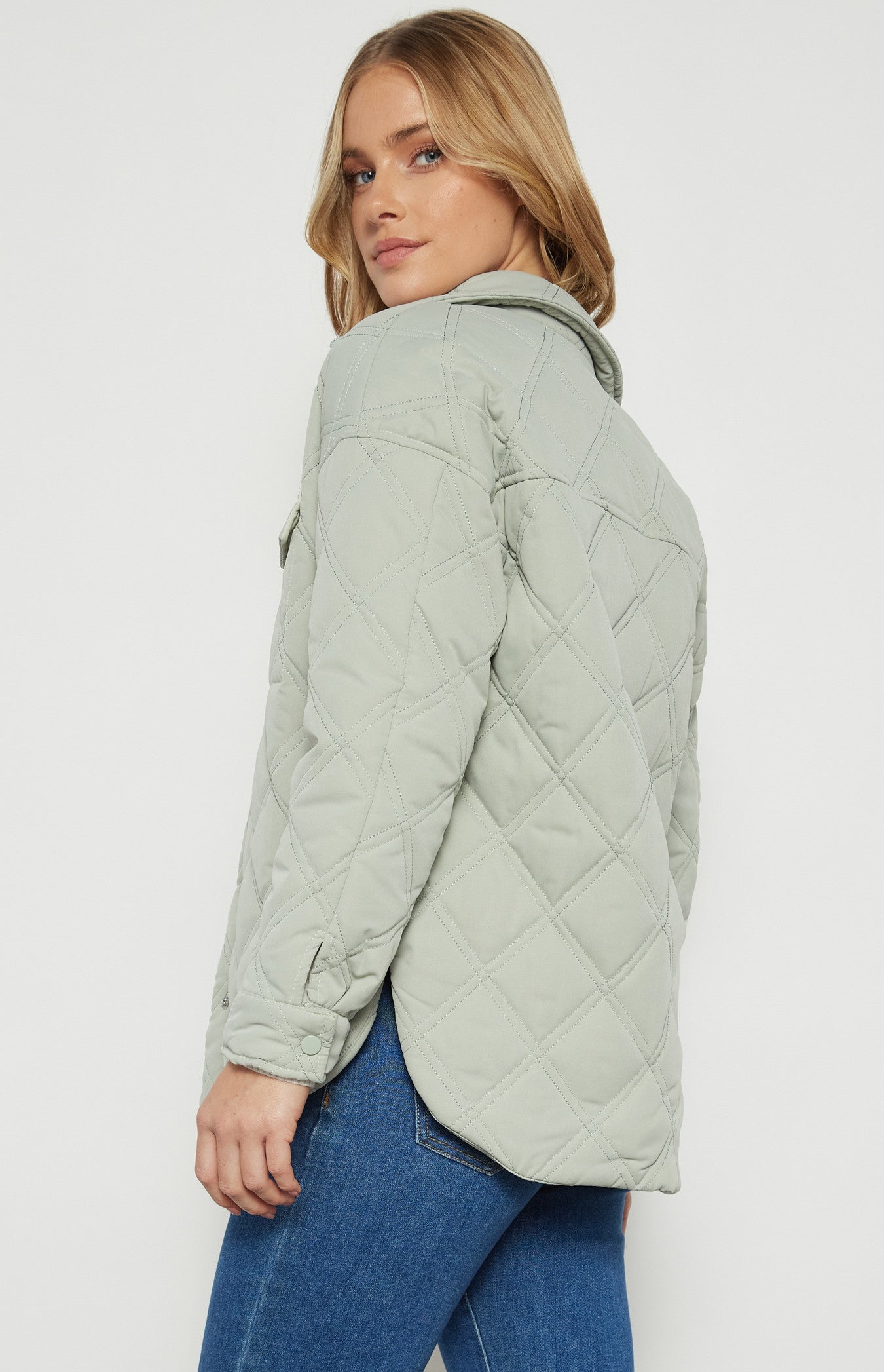 A statement in cool-weather layering, the Quilted Trucker Jacket with Pocket Details brings together urban utility and elevated style. Designed in a rich khaki hue, this jacket features tonal quilted panels, a boxy silhouette, and flap patch pockets for a touch of military-inspired charm. Lightweight yet warm, it’s the perfect trans-seasonal piece to throw over knits or layer with sleek basics.