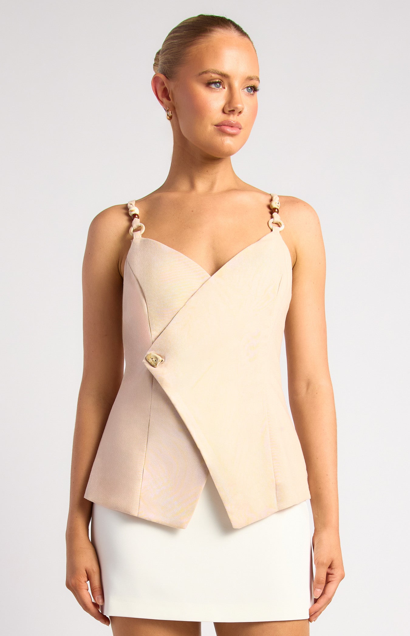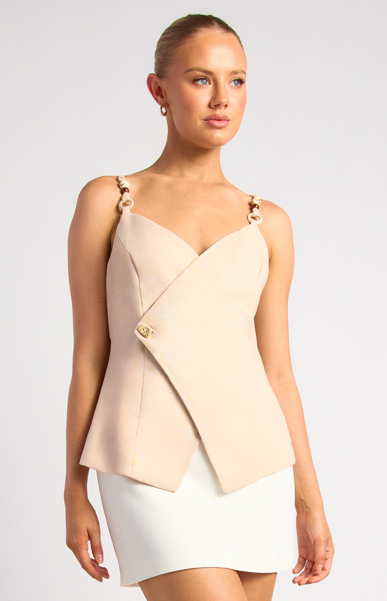 Rayon Blend Wrap Top With Multi Beaded Strap Details