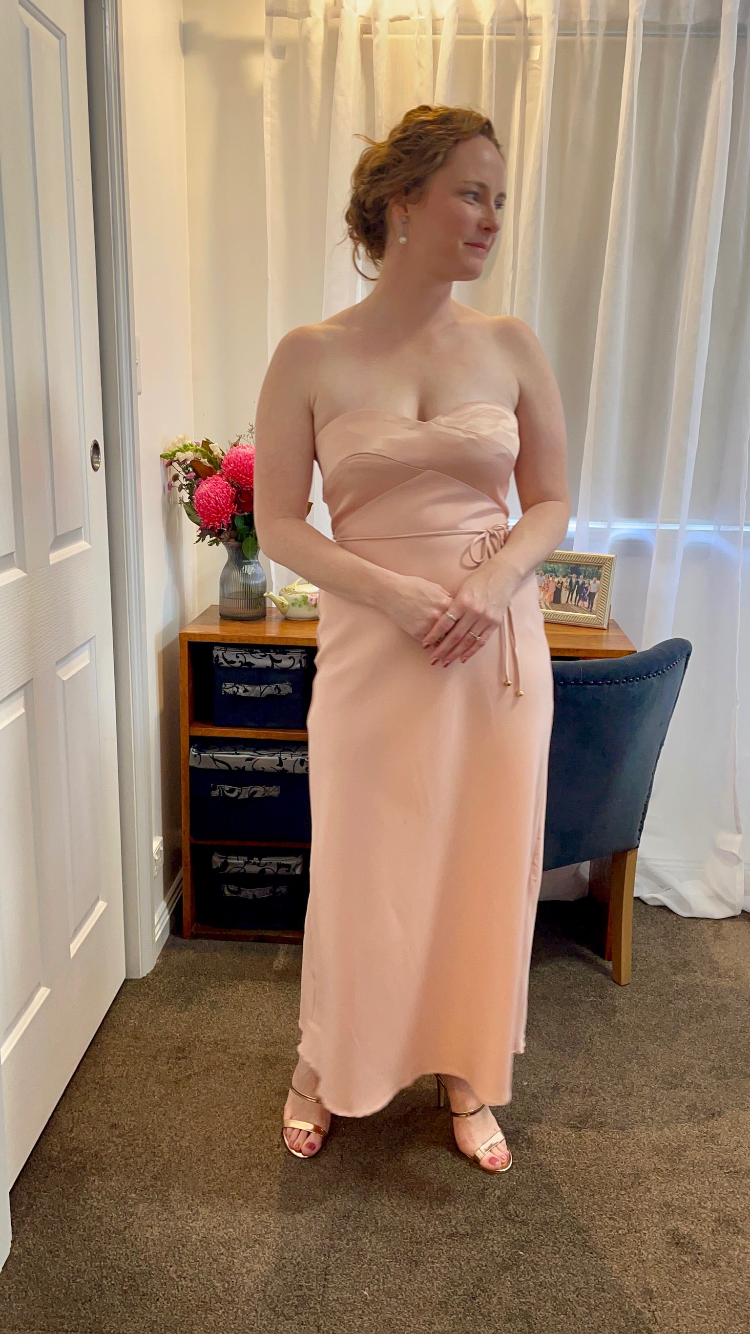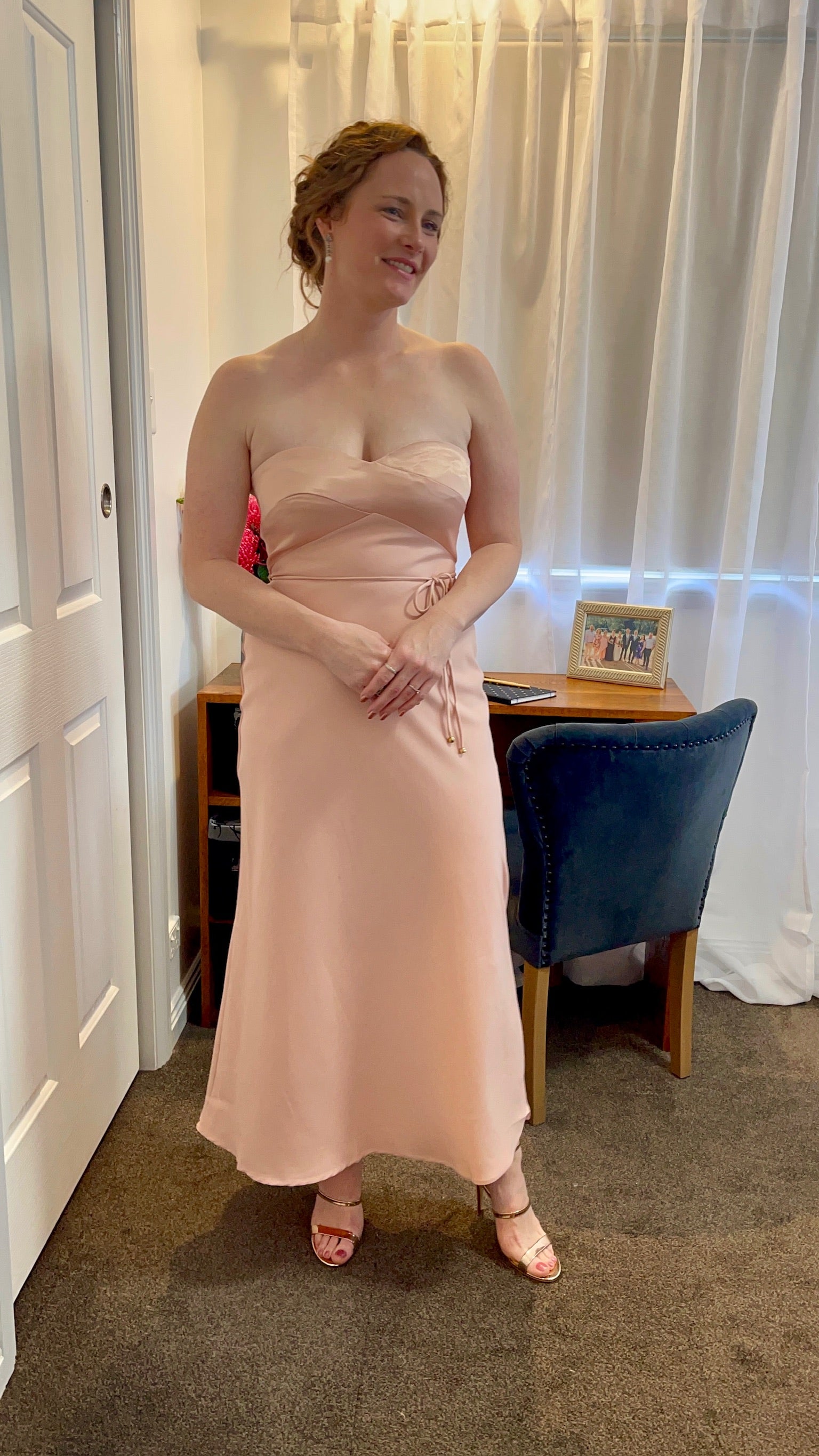 • Lined through bodice, unlined skirt – recommend nude shapewear