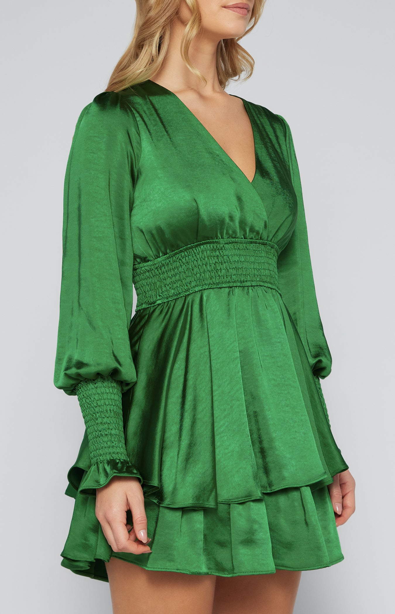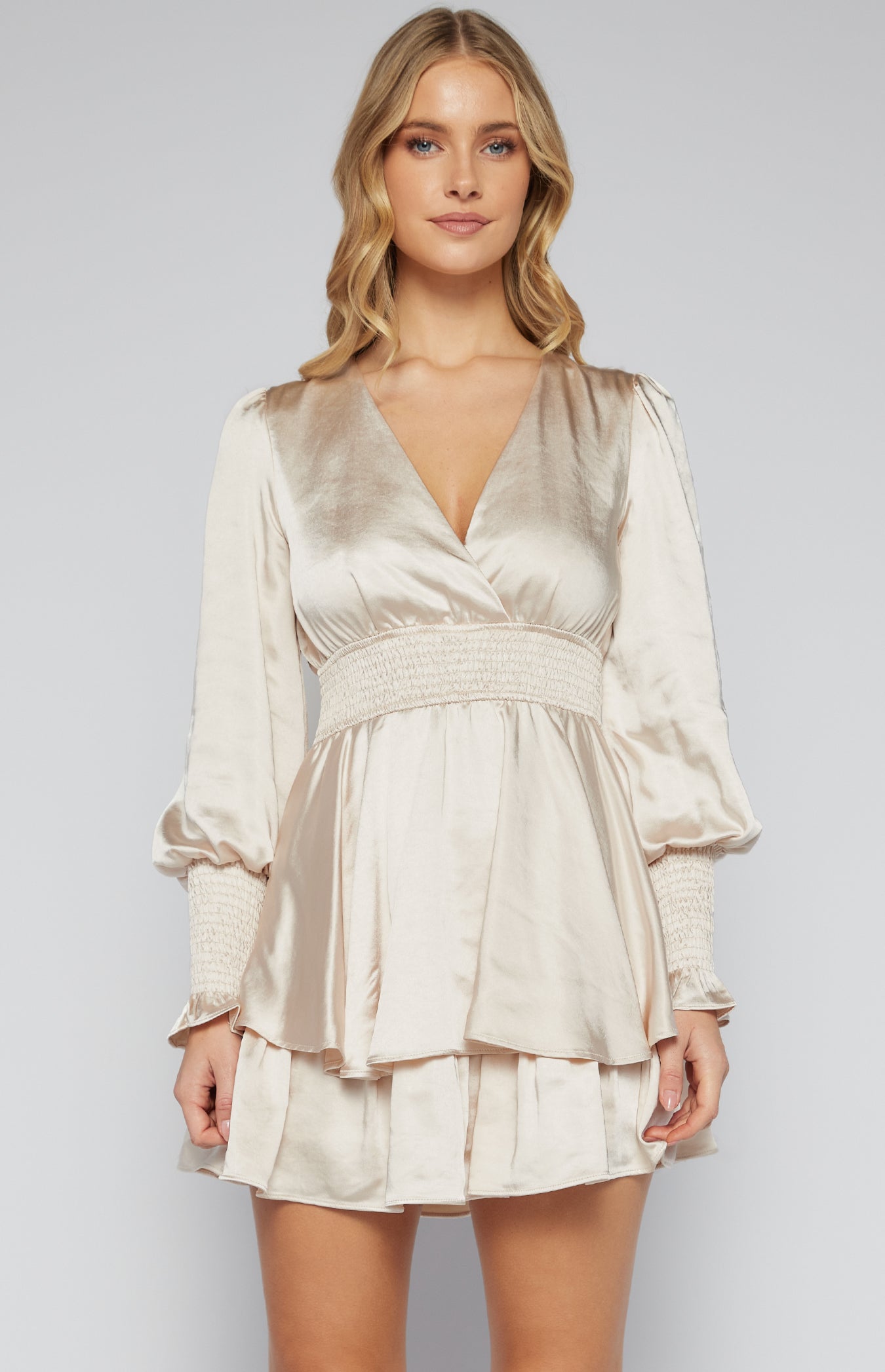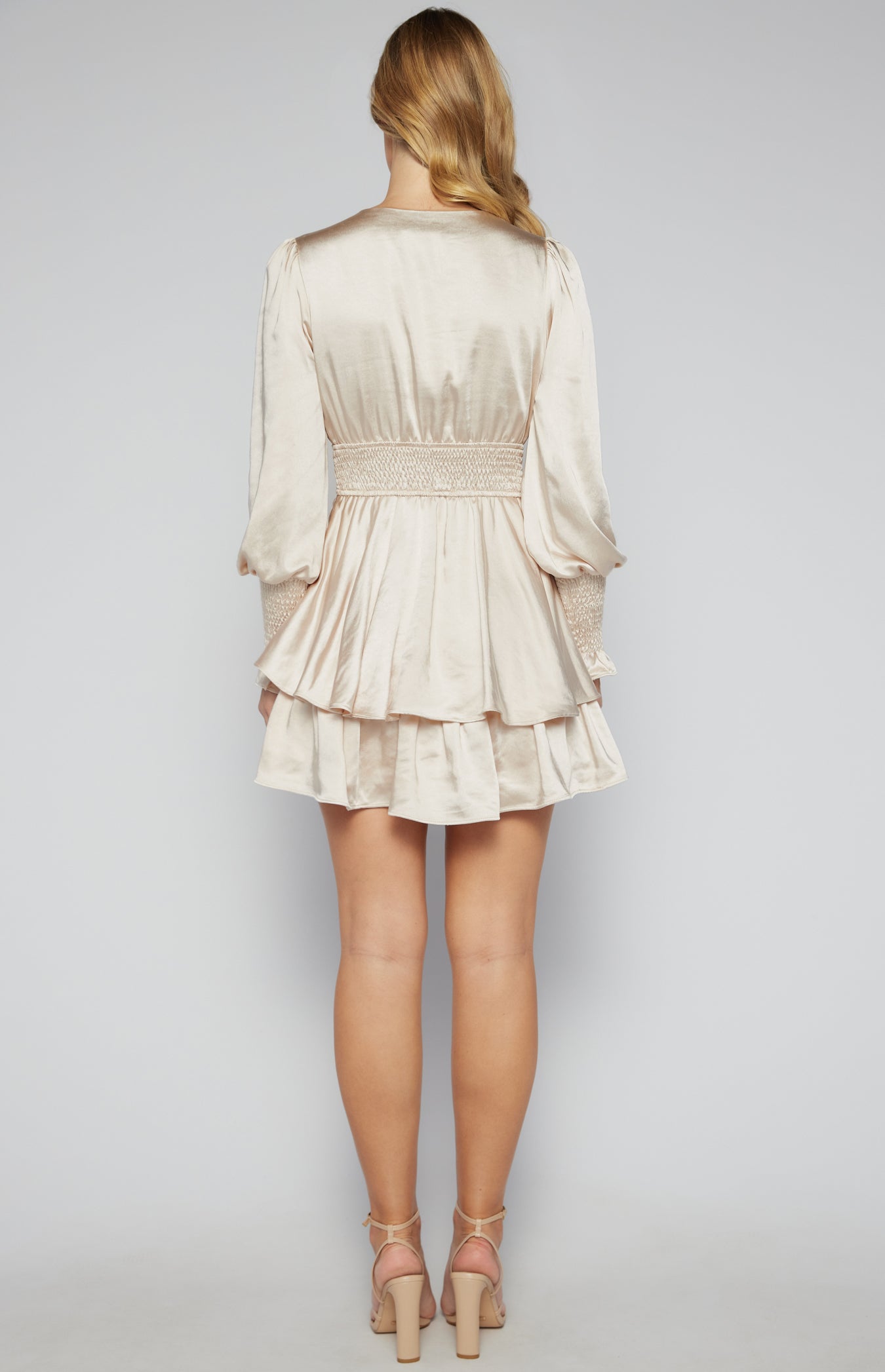 Satin Mini Dress with Double Ruffle Hem