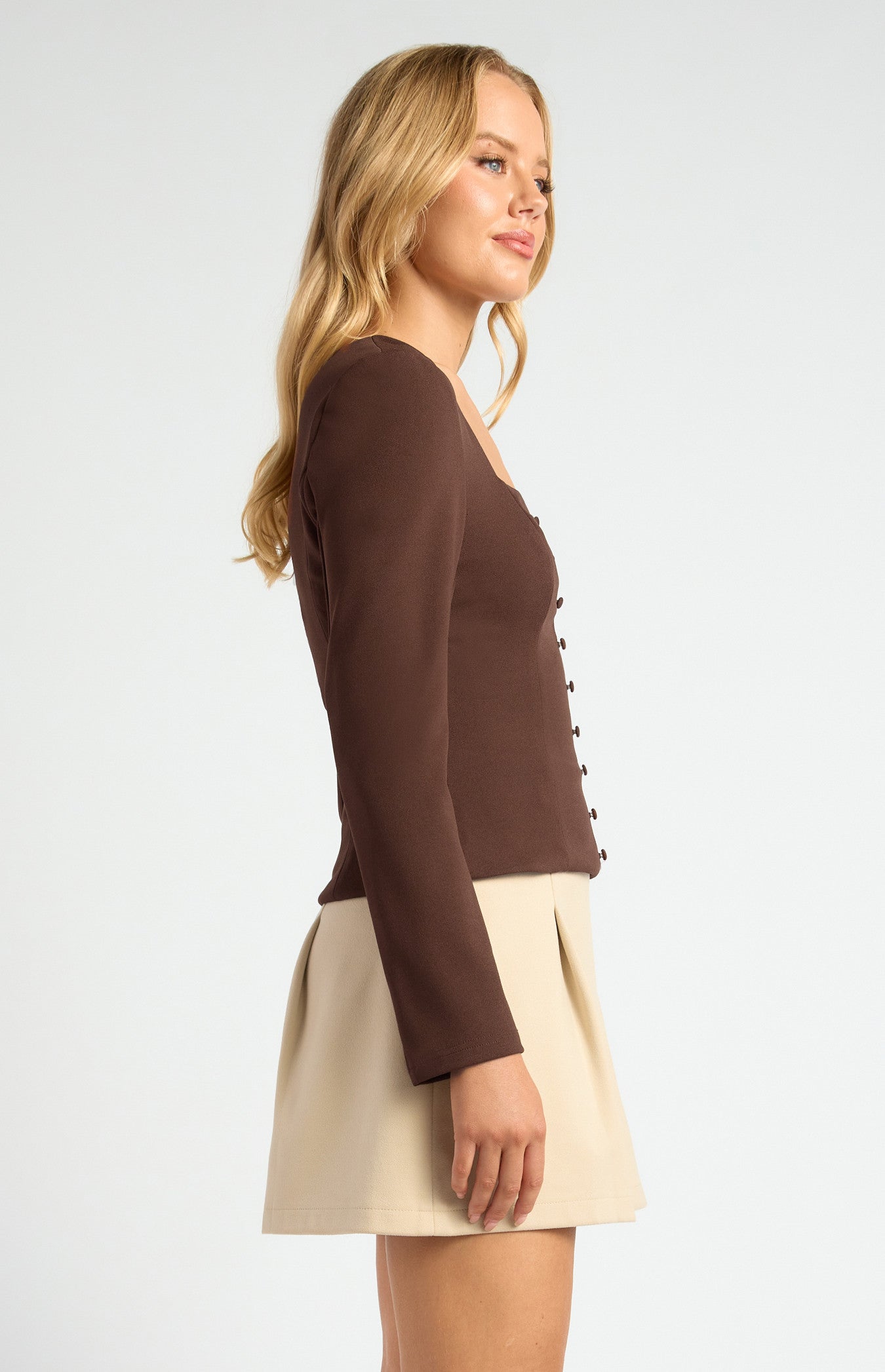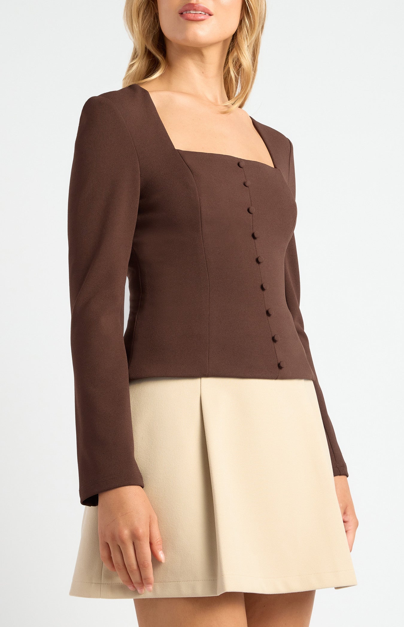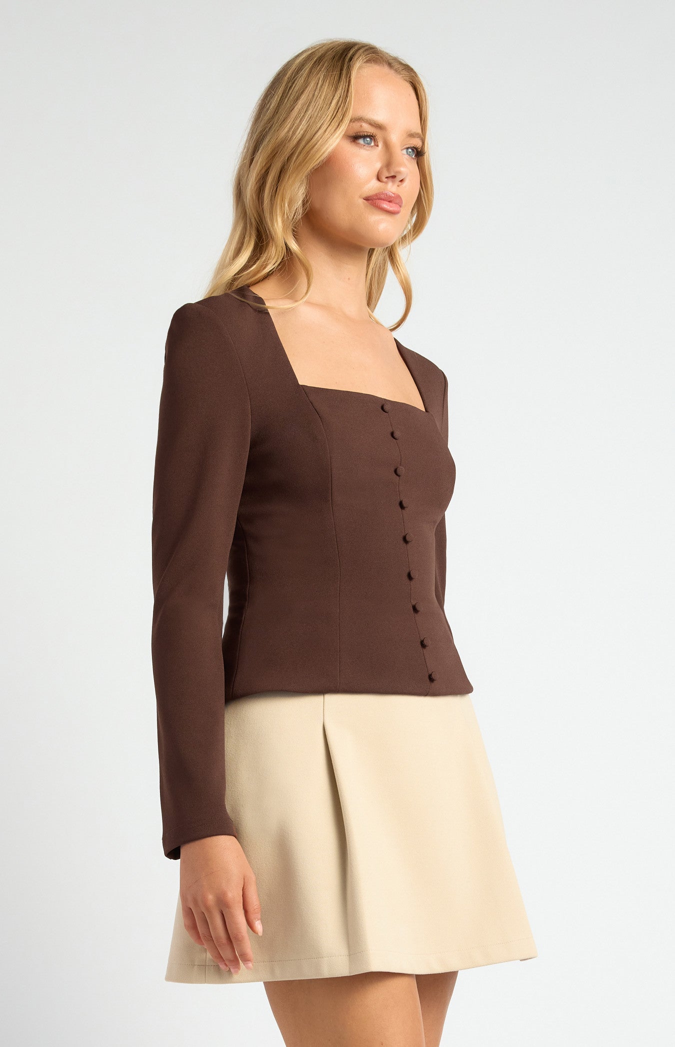 Effortlessly polished, the Self Fabric Centre Front Button Detail Jersey Top blends softness with subtle detail. Crafted from smooth stretch jersey, this top features a flattering scoop neckline, a slimline silhouette, and tonal self-fabric button accents through the front. A versatile essential that pairs perfectly with denim, tailoring, or layered under jackets for an elevated casual look.