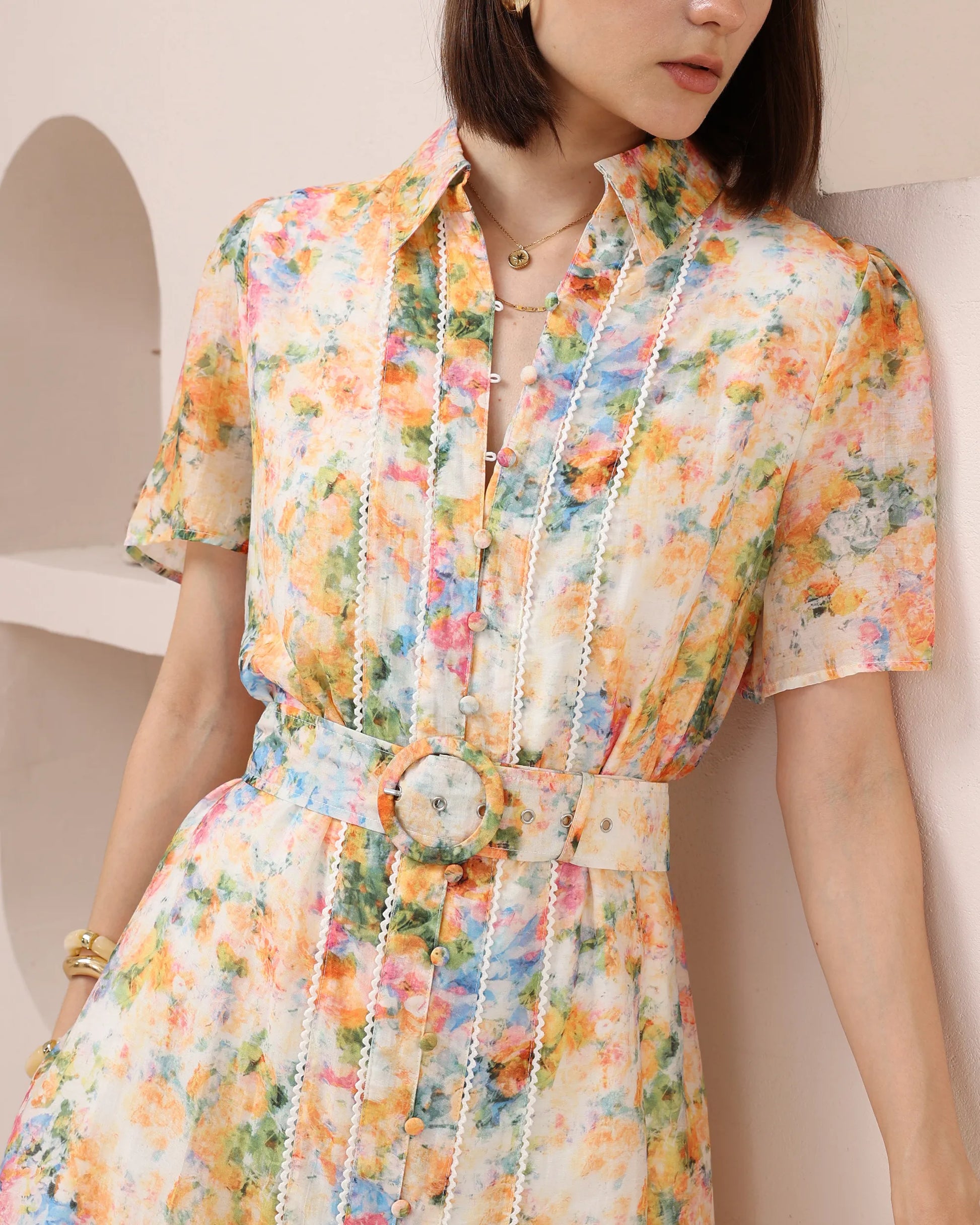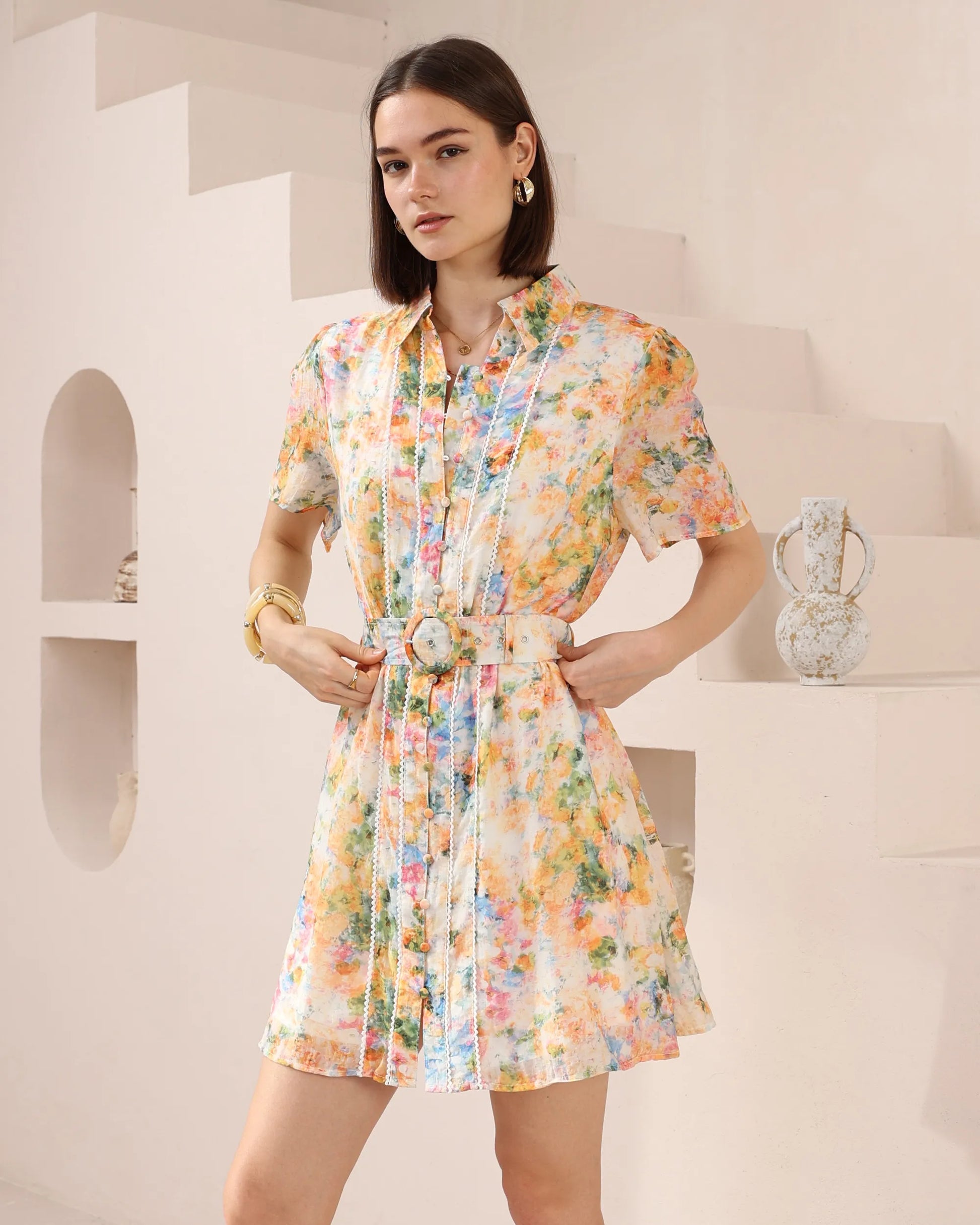 • Bright and feminine short dress in a soft abstract floral print on yellow