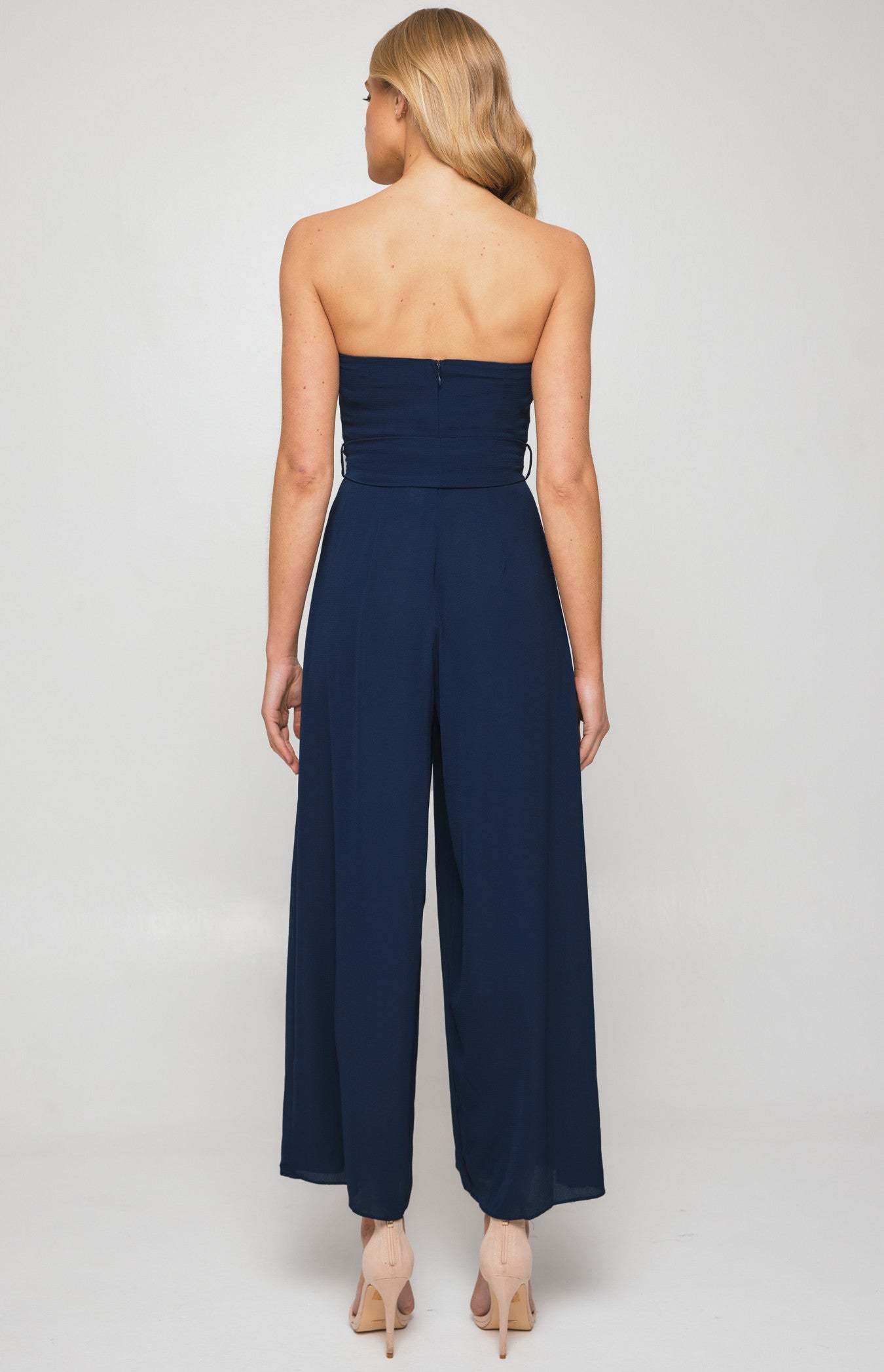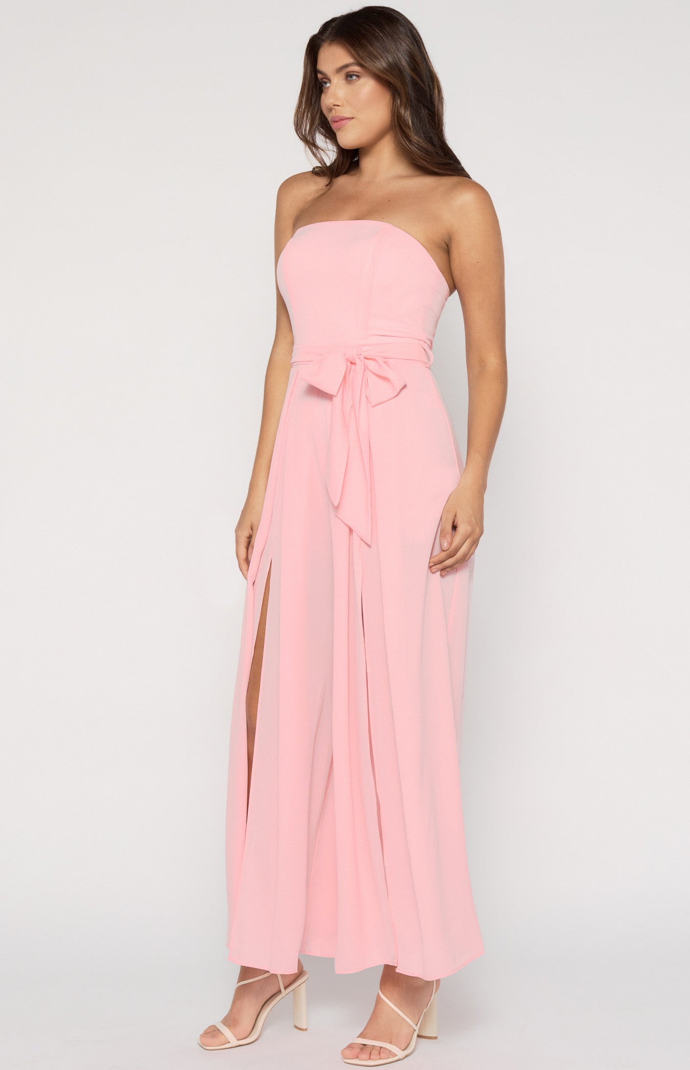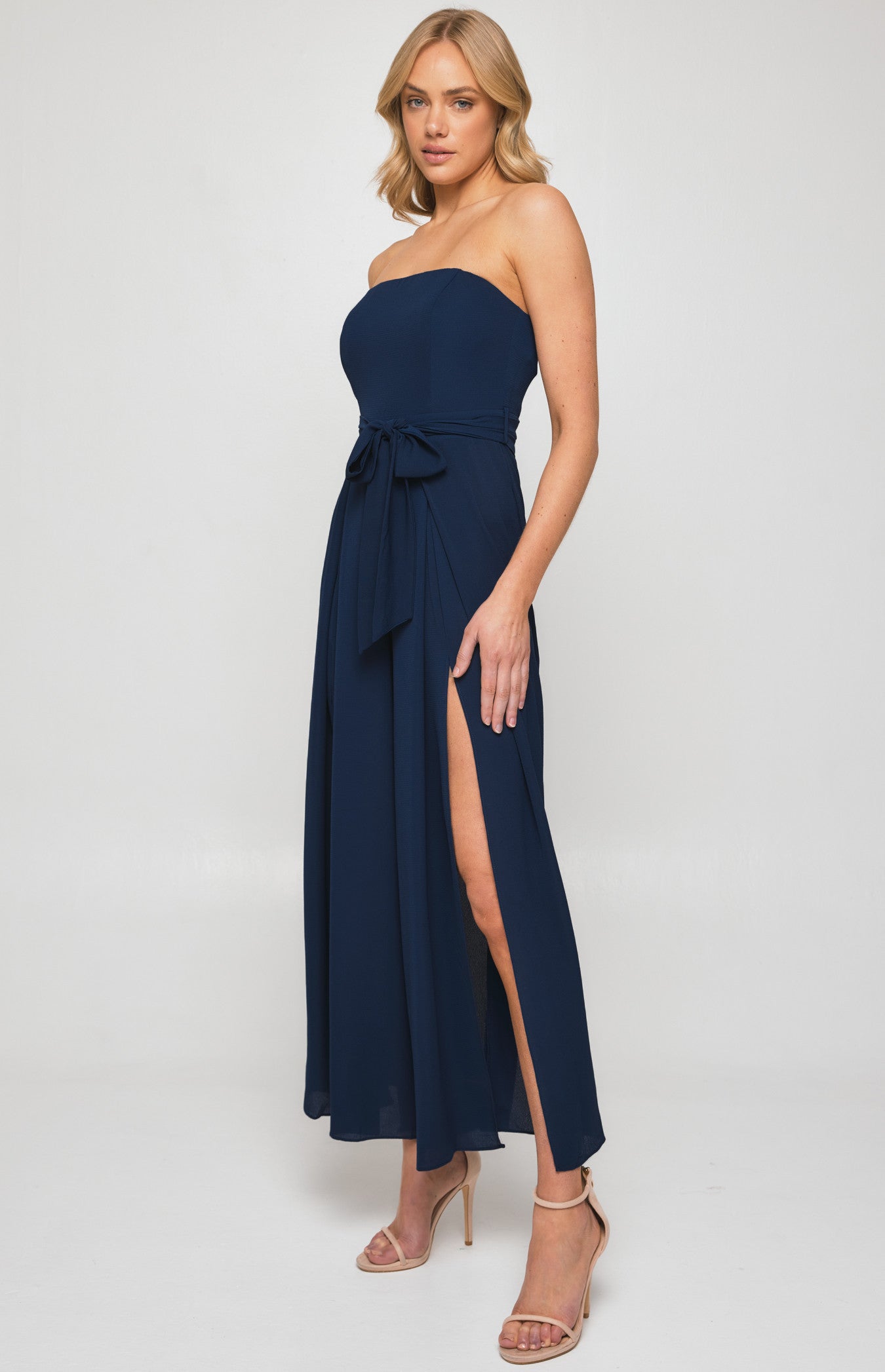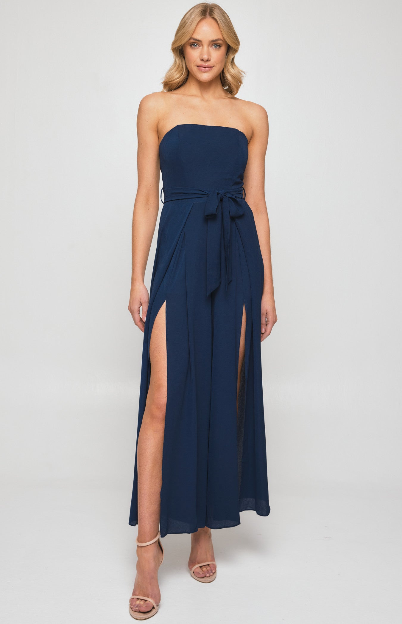 Striking and streamlined, the Split Leg Waist Detail Jumpsuit is made for modern statement dressing. Designed with a flattering fitted bodice, this jumpsuit features dramatic split-leg details that create flow and movement, while the cinched waistline enhances your silhouette. Sleek and minimal, it’s a standout choice for formal occasions, evenings out, or elevated event wear.