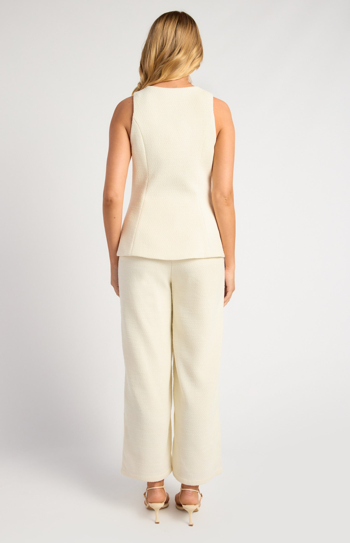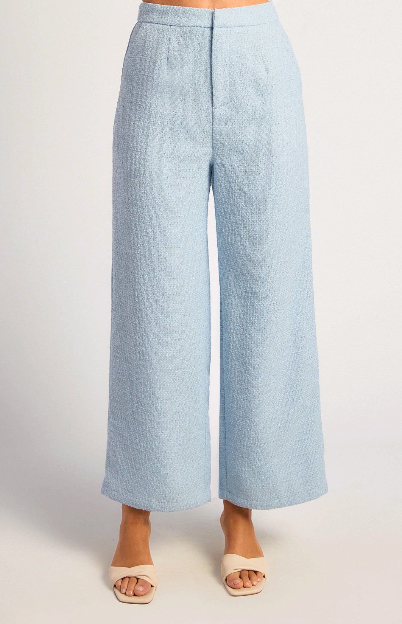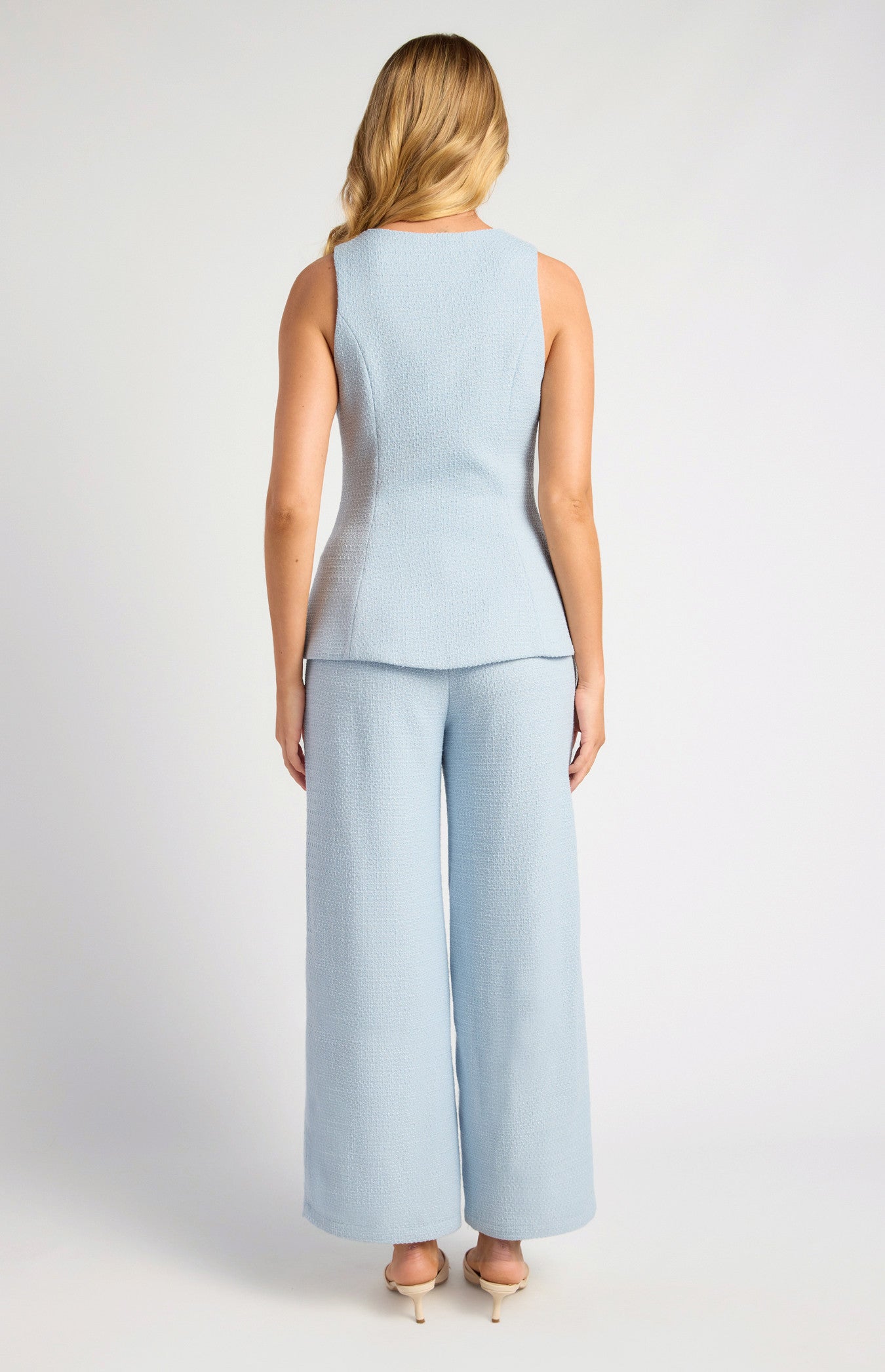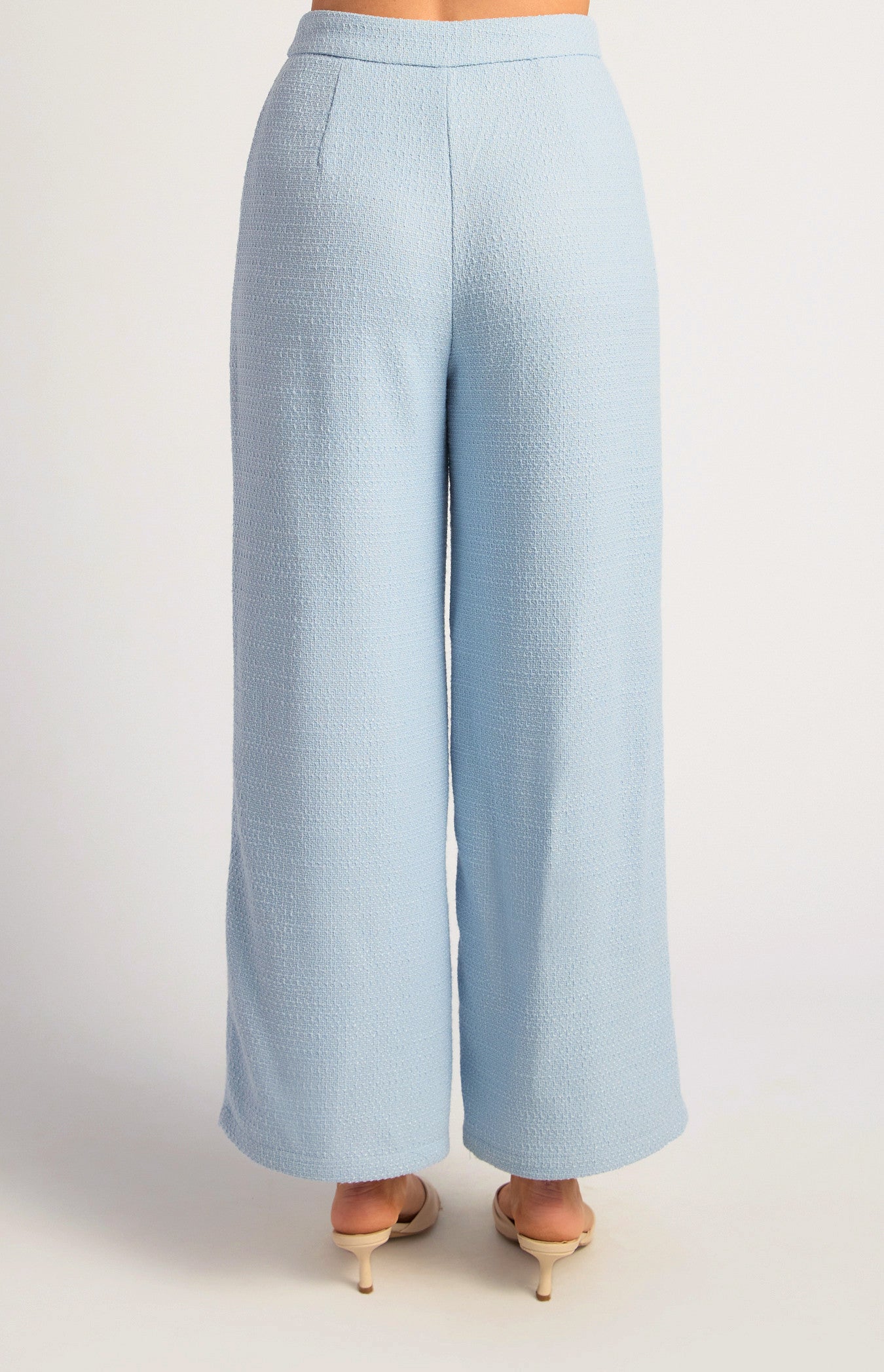 - Soft tweed fabrication with subtle texture
