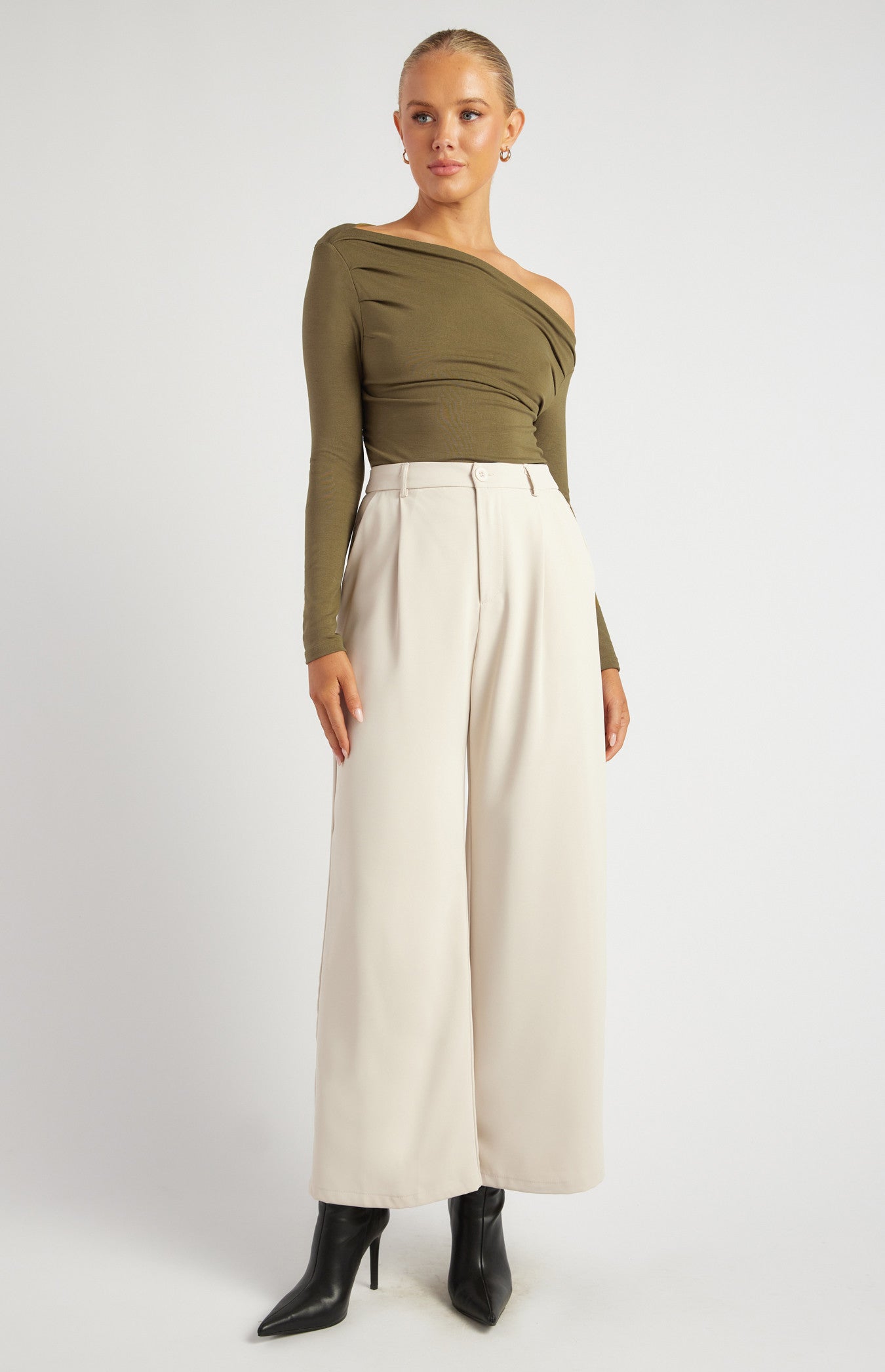 - Long sleeves with subtle gathering